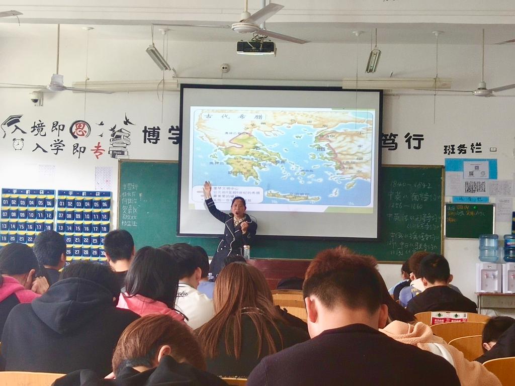 杜红娟博士以时间轴为线索,以某个时间的重要事件为切入点,复习了中国历史。本次示范课以古希腊文明的起源与衰落为重点,详细讲授了世界历史,课程内容系统、有条理;举例紧扣内容且具代表性,深受学生喜爱;课堂气氛活跃,学生回答问题积极。充分地展示了杜博士扎实的专业基本功和深厚的知识功底,达到很好的课堂效果。