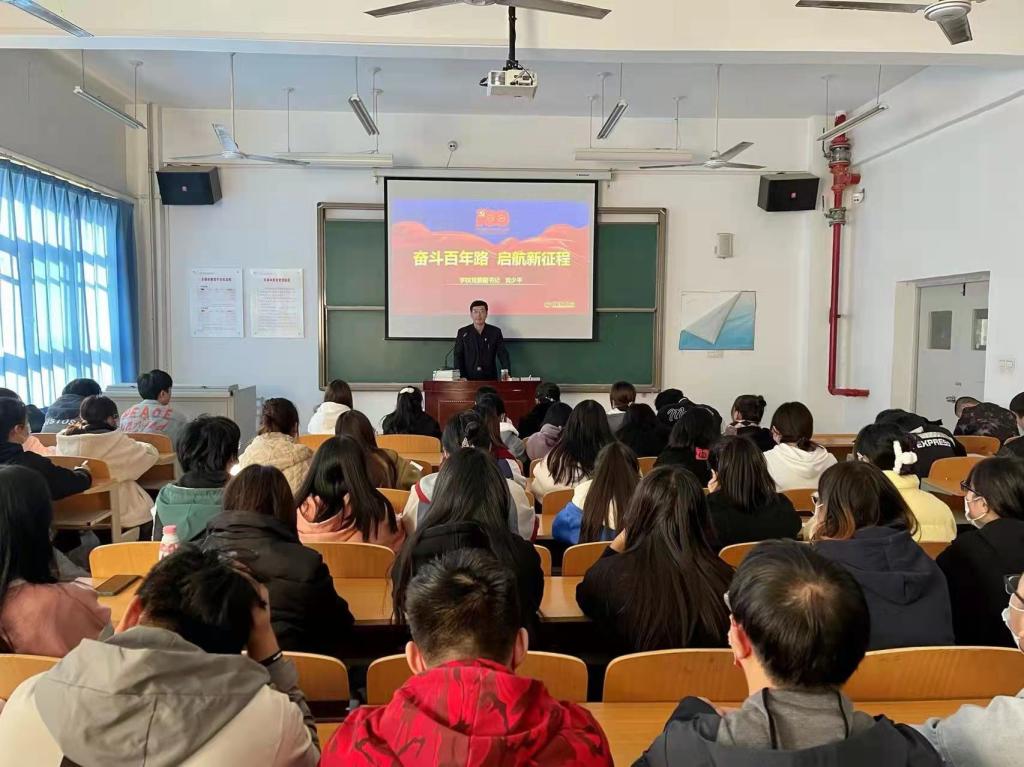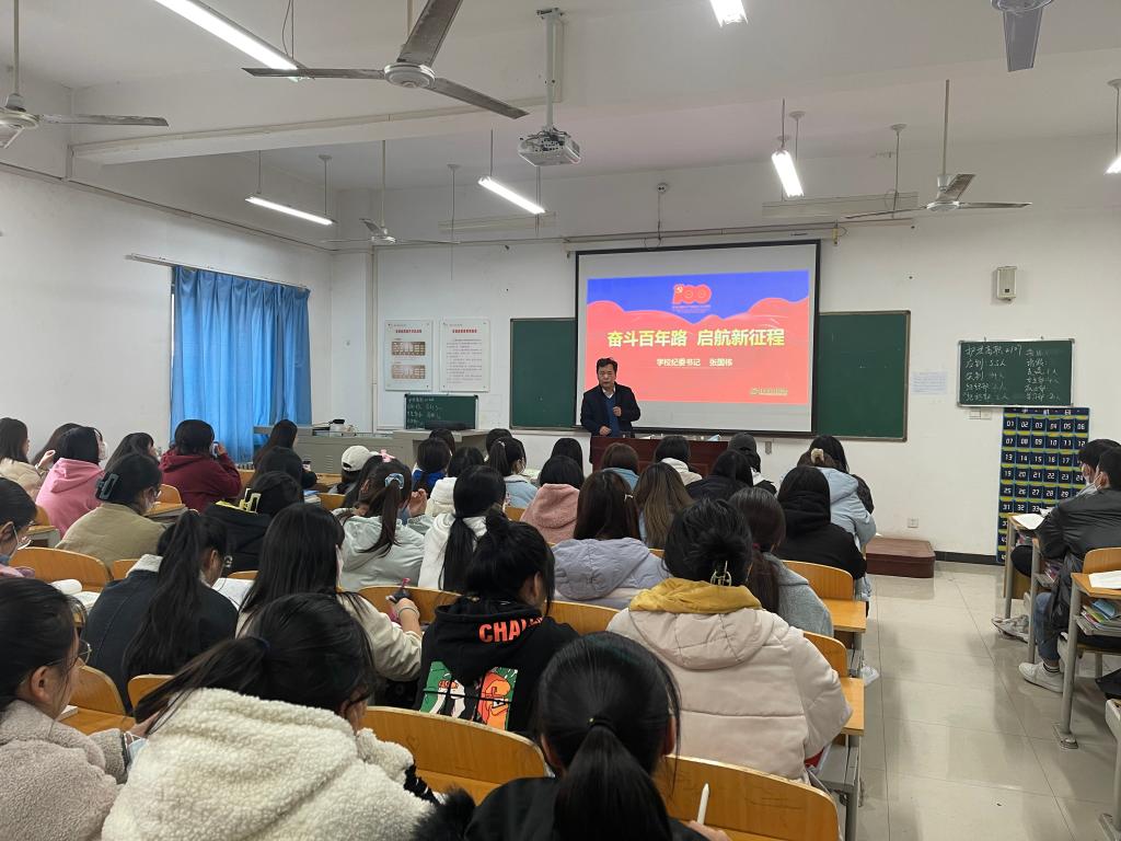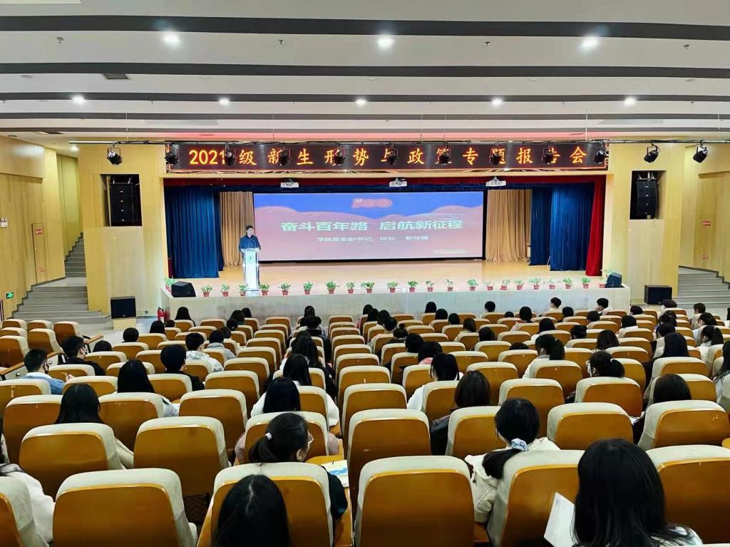 学校领导围绕“奋斗百年路•启航新征程”和“谱写乡村全面振兴新篇章”两大主题为bat3652021级新生进行了生动的思想政治理论教育。在“奋斗百年路•启航新征程”专题讲授中,他们从“丰功伟绩•恢弘史诗、精神血脉•代代相传、以史为鉴•开创未来”三个方面回望百年光辉历史,重点讲述了1921年中国共产党成立后,带领中国人民实现从站起来到富起来再到强起来的伟大飞跃,中国共产党的先驱们形成的伟大建党精神必须代代相传,用历史映照现实,远观未来,从而在新的征程中牢记初心使命、走好新的赶考路。