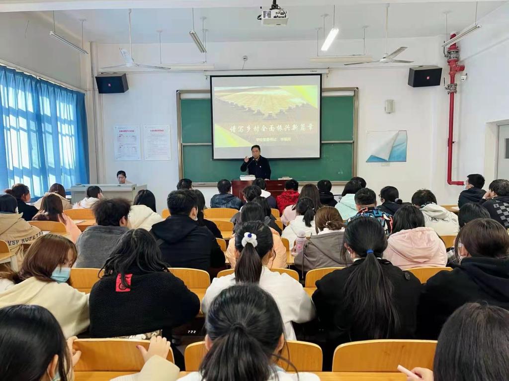 在“谱写乡村全面振兴新篇章”专题讲授中,他们结合bat365大多数学生来自农村的实际情况,从“农业农村展新颜、把握重点续新篇、抓住重点开新局”三个方面讲述了农业农村工作发展的历史性成就、历史性变革。让学生们深刻认识到脱贫攻坚取得胜利后,“三农”工作重心发生历史性转移,要举全党全社会之力推动乡村振兴。运用详实的数据和身边的案例,讲述了全面推进乡村振兴的重要举措,帮助学生用大历史观看待农业、农村、农民问题,深刻认识“三农”在全面建设社会主义现代化国家中的重要性。