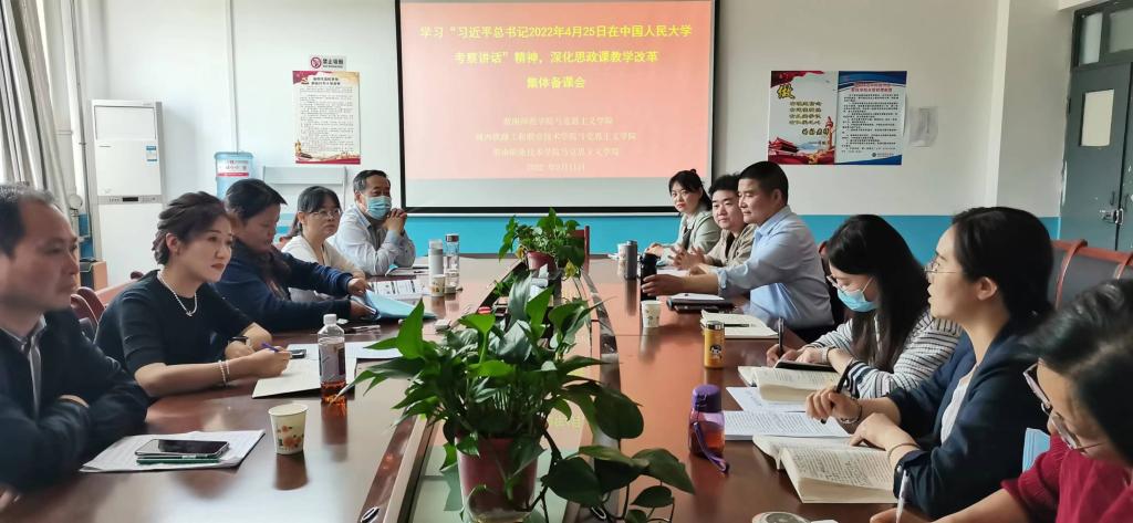 5月11日下午,由渭南师范学院bat365中文官方网站毛概教研室牵头组织的集体备课会在该校bat365中文官方网站318会议室举行。陕西铁路工程职业技术学院毛概教研室主任及部分教师代表、bat365毛概教研室主任达芳菊教授、余金枝副教授,青年骨干教师刘晓丹、郭朋雪共计20余名老师参加。备课会由该校bat365中文官方网站毛概教研室负责人张巧丽教授主持,该校bat365中文官方网站副院长单剑锋出席并讲话。