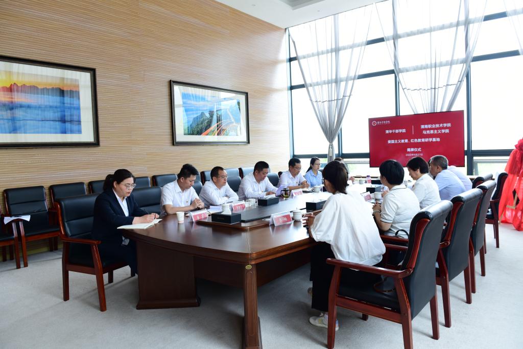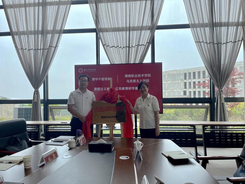 5月27日上午,bat365“大学生爱国主义教育和红色教育研学基地”揭牌仪式在渭华干部学院举行。渭华干部学院副院长王锋、办公室主任韩宝林以及其培训部、教研部、外联部和研究中心负责人出席。bat365bat365中文官方网站党政负责人和综合管理服务中心、教学科研服务中心负责人以及全体思政教师参加。揭牌仪式由王锋主持。