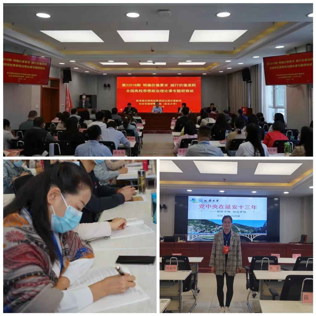 开班后,两位老师先后聆听了同济大学、吉林大学、北京航空航天大学、陕西铁路工程职业技术学院等bat365中文官方网站学院专家教授讲授的《整体教学设计》《高职高专教学特点有机融入思路》《同课异构示范说课》等内容。《整体教学设计》专题从“法治专题设计依据”“专题教学设计的一体化要求”“法治专题教学设计的框架与重点”三个方面进行了讲授。《同课异构示范说课》专题展开案例教学,精彩的示范说课完整且充分,为学员提供了丰富的思政课教学案例,讲授精彩,案例生动,教学模式鲜活。研修班还组织学员赴延安革命纪念馆、王家坪革命旧址、陕甘宁边区高等法院旧址、枣园革命旧址、杨家岭革命旧址、知青旧居—梁家河等地开展了现场教学。