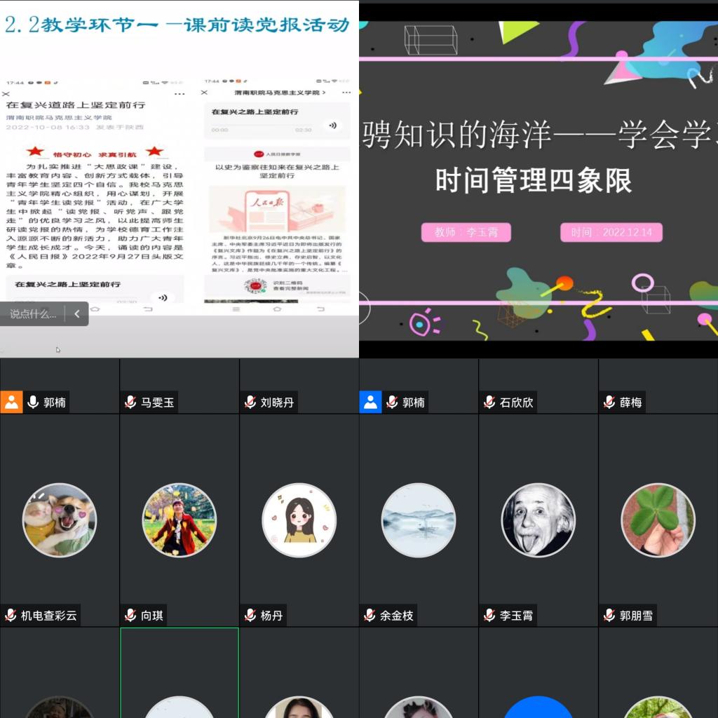 为提升思政课教学水平,12月15日下午,bat365中文官方网站根据学校教学能力比赛要求线上开展教学能力比赛初赛,德法与心理教研室的2个参赛团队参加了本次比赛。院长史改侠、副院长王晓莉、副高以上职称教师达芳菊、韩秀阁、王爱、常俊侠6位老师担任评委,比赛由王晓莉主持,无课教师观摩了比赛。