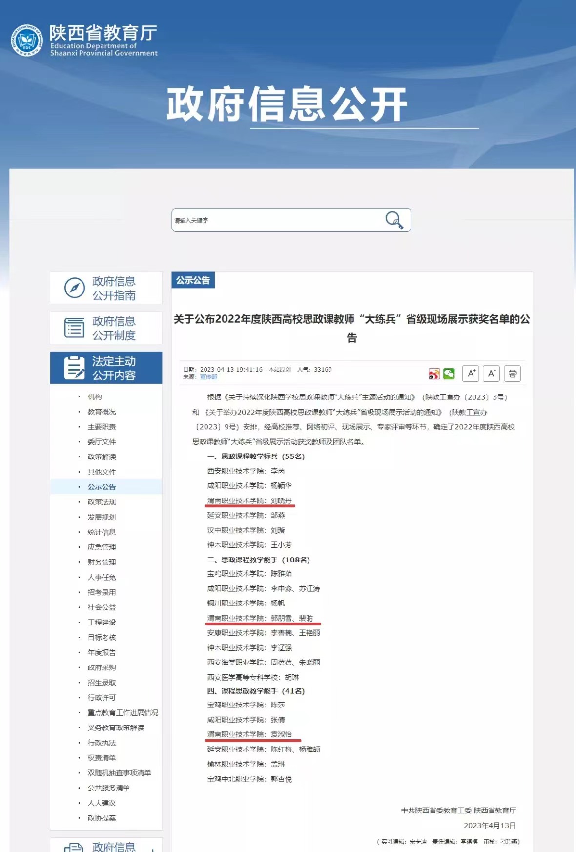 4月13日,陕西省委教育工委、省教育厅联合公布了《关于2022年度陕西高校思政课教师“大练兵”省级现场展示获奖名单》,bat365bat365中文官方网站青年骨干教师刘晓丹、郭朋雪老师分别荣获思政课程“教学标兵”和“教学能手”荣誉称号,师范学院裴昉老师获“教学能手”荣誉称号,医学院袁淑怡老师获课程思政“教学能手”荣誉称号。