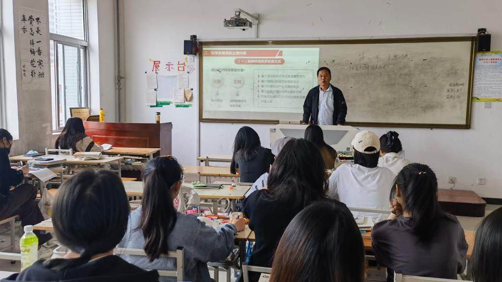 17日下午,新聘教师晏金城在医南512教室进行了公开课展示。他讲授了《毛泽东思想和中国特色社会主义理论体系概论》第八章中的科学发展观的主要内容,他从加快转变经济发展方式和发展社会主义民主政治两方面主讲了我国的各大战略决策所取得的显著进步,耳熟能详的案例极大地吸引了学生的注意力,课堂抬头率高,教学效果良好。