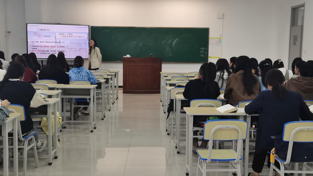 13日下午,新进教师井翕茜在工科实训楼341教室进行了公开课展示。她讲授了《习近平新时代中国特色社会主义思想》第六讲中的创新发展理念,她指出创新是一个国家、一个民族发展进步的不竭动力,抓住了创新,就抓住了牵动经济社会发展全局的“牛鼻子”,并列举了近些年我国在科技创新、文化创新等方面取得的巨大成就,通过实例增强学生的民族自豪感和爱国主义情怀。