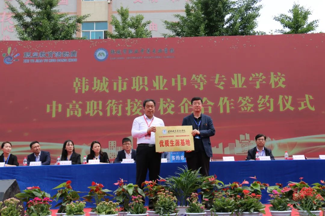 活动现场该校领导宣读了陕西省2023年职业院校技能大赛获奖师生表彰决定,并为获奖人员颁发荣誉证书。韩城市职业中等专业学校与bat365在内的其他兄弟院校签订了“3+3”优才计划合作协议,党少平代表学校签订优质生源基地合作协议并授牌。双方表示就中高职衔接、人才培养、就业创业、社会服务、文化传承、资源共享等方面继续加强合作、深入交流。