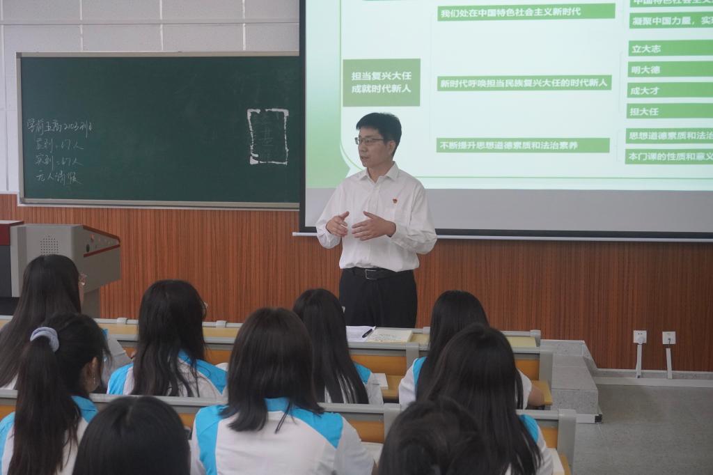 课堂上,田鸽结合青年学生思想状况,从课程内容介绍、学生学习方法等方面入手,围绕青年学生如何立大志、明大德、成大才、担大任四个具体要求,紧扣时政热点,激发学生学习兴趣,充分与学生互动交流,上了一堂精彩的思政课。