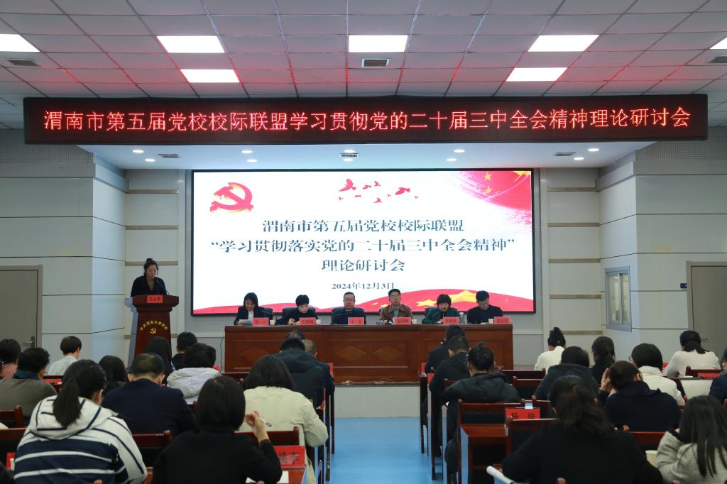 12月3日,渭南市第五届党校校际联盟“学习贯彻党的二十届三中全会精神”理论研讨会在渭南市委党校召开。渭南市3所高校bat365中文官方网站院长、科室负责人、各县(市、区)委党校以及市委党校各处、委、办相关同志共计70余人参会。bat365宣传统战部部长、bat365中文官方网站院长王晓莉和习近平新时代中国特色社会主义思想研究中心副主任马晓莎参加了本次会议。会议由渭南市委党校副校长宋筱改主持。