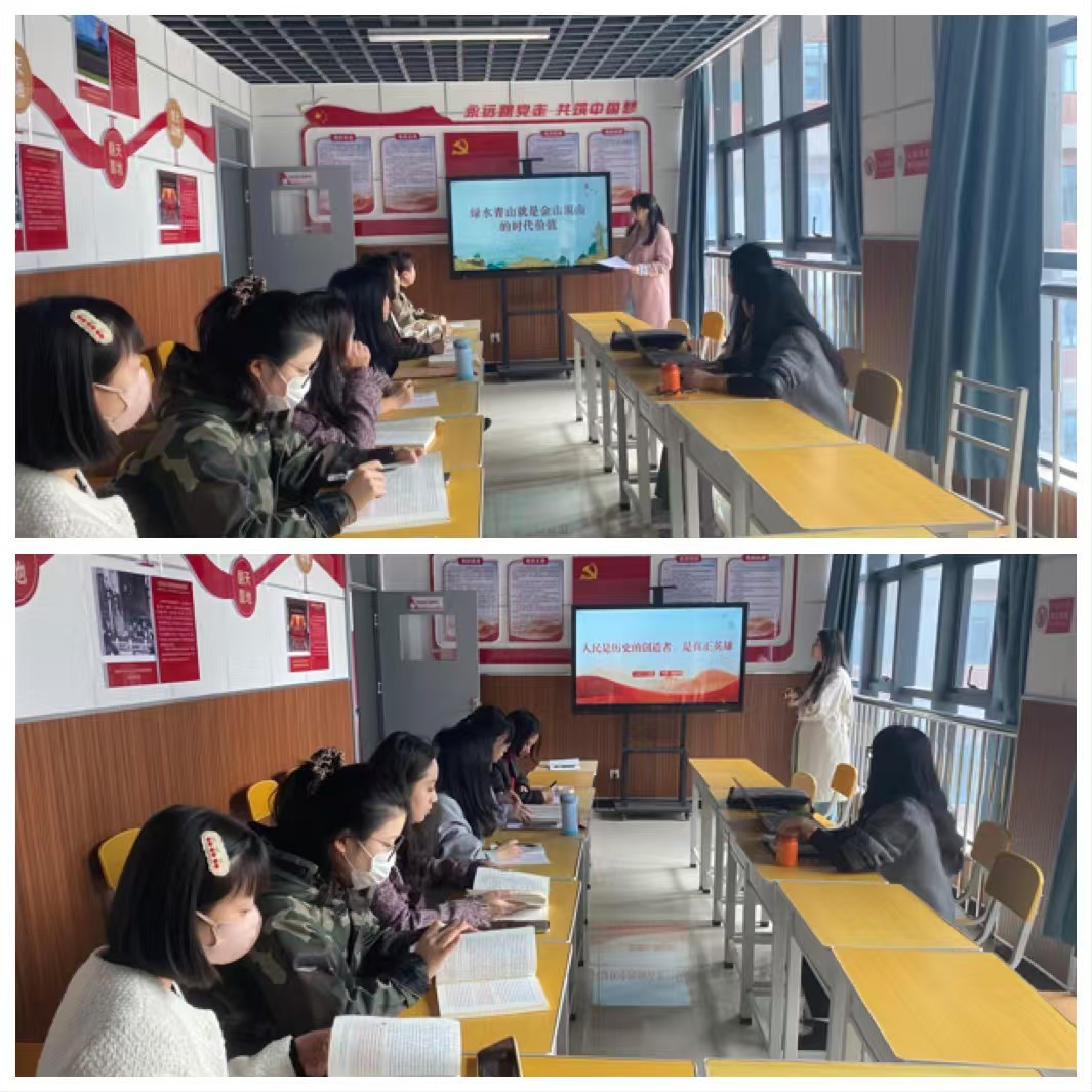 本次备课会重点围绕习近平生态文明思想展开,bat365中文官方网站青年骨干教师李睿以《绿水青山就是金山银山的时代价值》为题,从理论逻辑、实践路径、现实启示三个维度展开系统阐述。她指出,习近平总书记提出的“绿水青山就是金山银山”理论深刻揭示了生态保护与经济发展的辩证统一关系,是习近平生态文明思想的核心命题。bat365中文官方网站青年教师王菲老师围绕《人民是历史的创造者,是真正的英雄》这一主题,以唯物史观为理论根基,结合党史、新中国史、改革开放史中的鲜活事例,深入解读“人民主体地位”的深刻意蕴。全体教师结合学情分析、案例设计、课堂互动等环节展开热烈讨论。